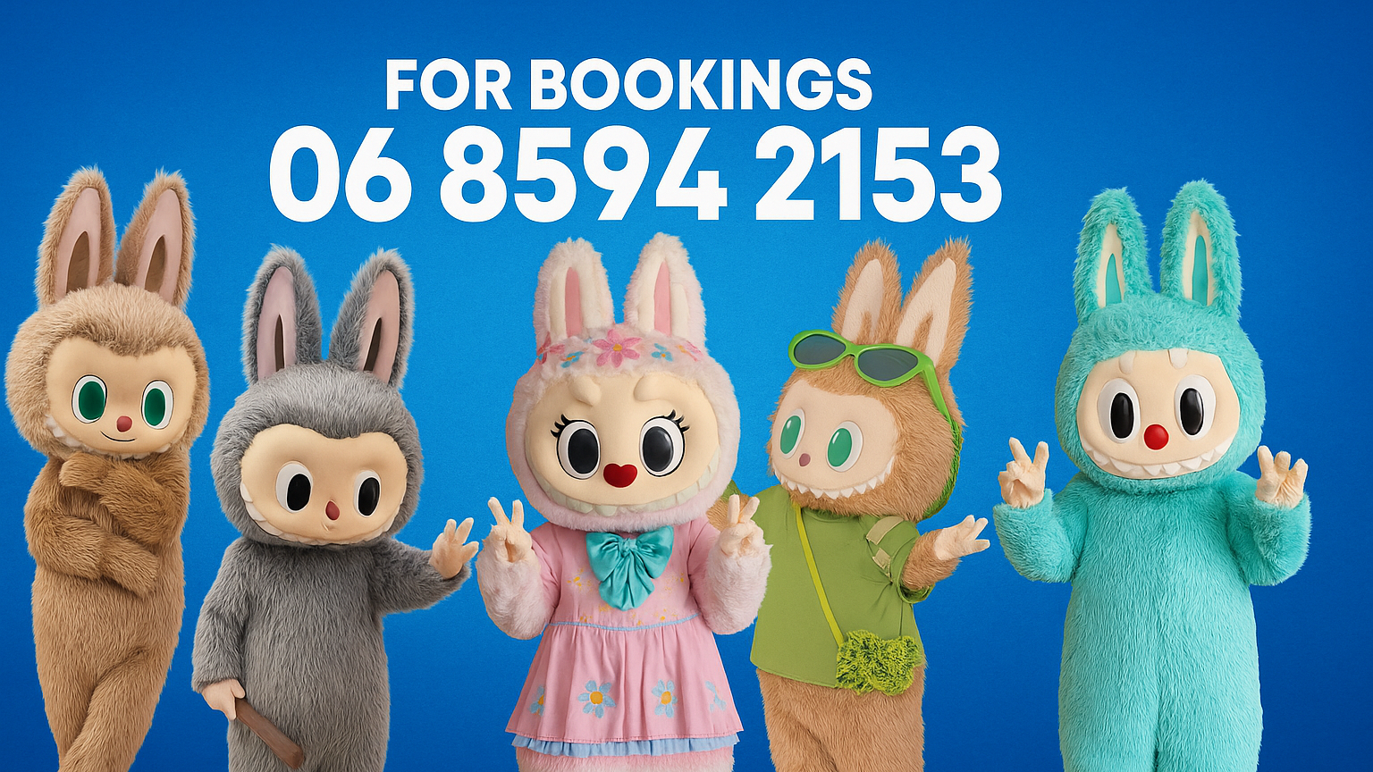 Laat één, twee of drie schattige Labubu’s langskomen op jouw locatie! Kinderen zijn dol op Labubu – perfect voor allerlei gelegenheden zoals: